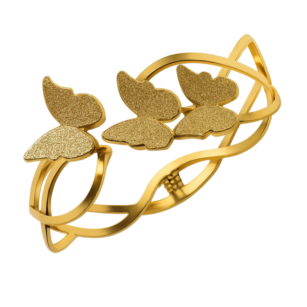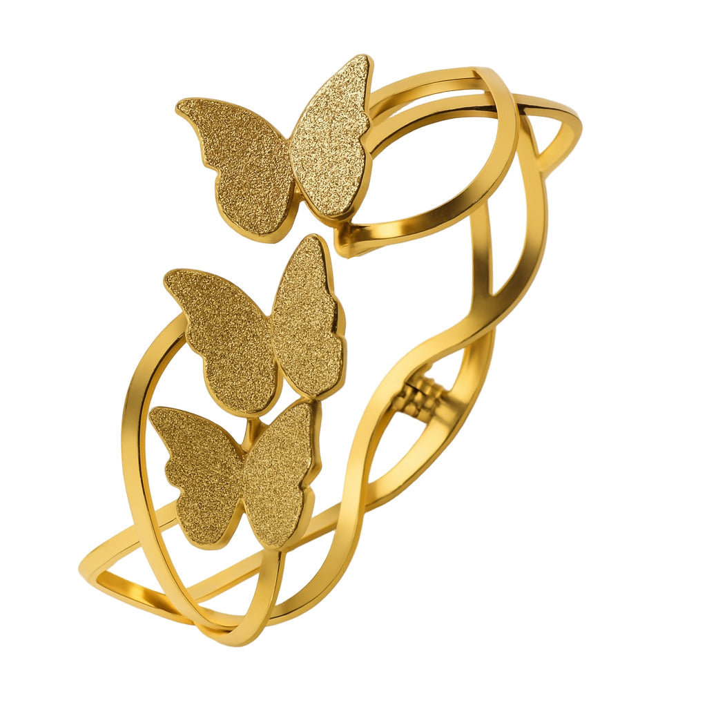 Butterfly themed anti-tarnish bracelets Made of stainless steel . Designed for long-lasting shine, reduced maintenance compared to regular jewellery and often hypoallergenic,