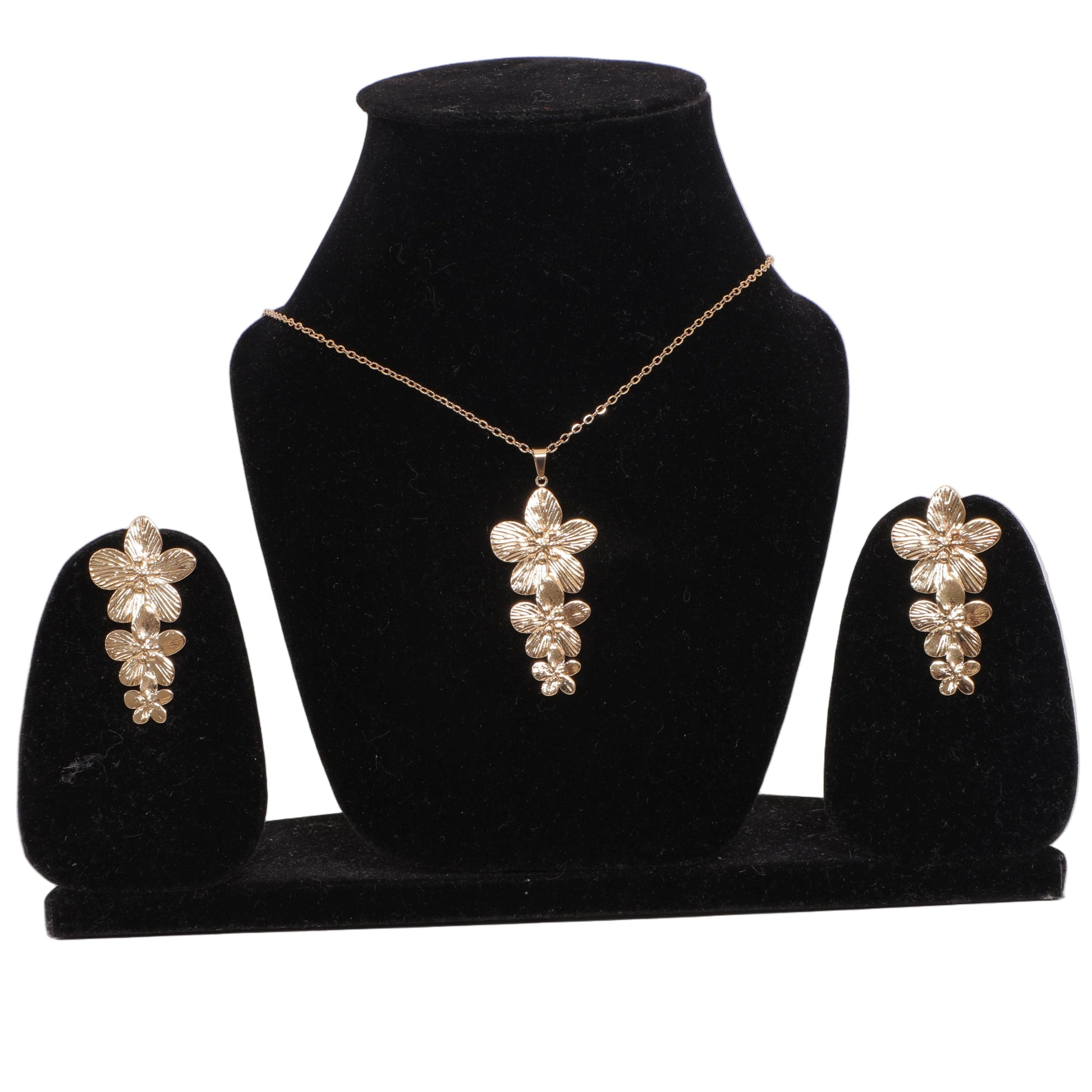 Cascading Blossom Stainless Steel Pendant Set with Earrings