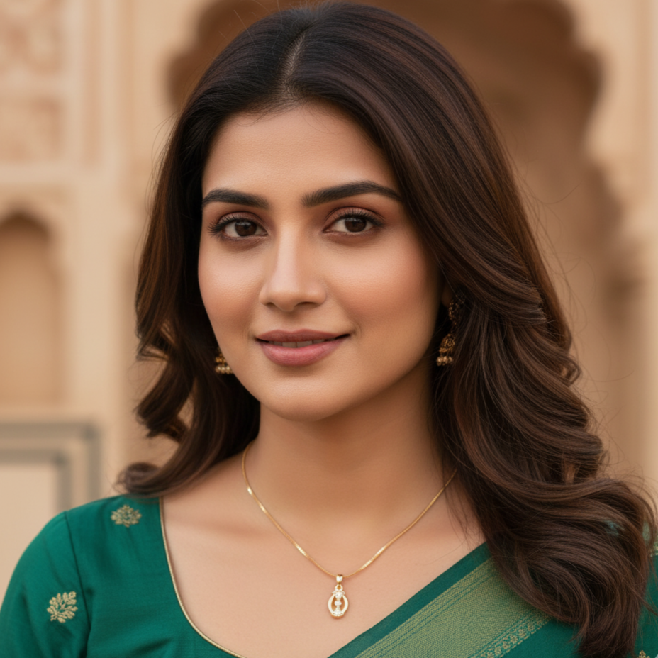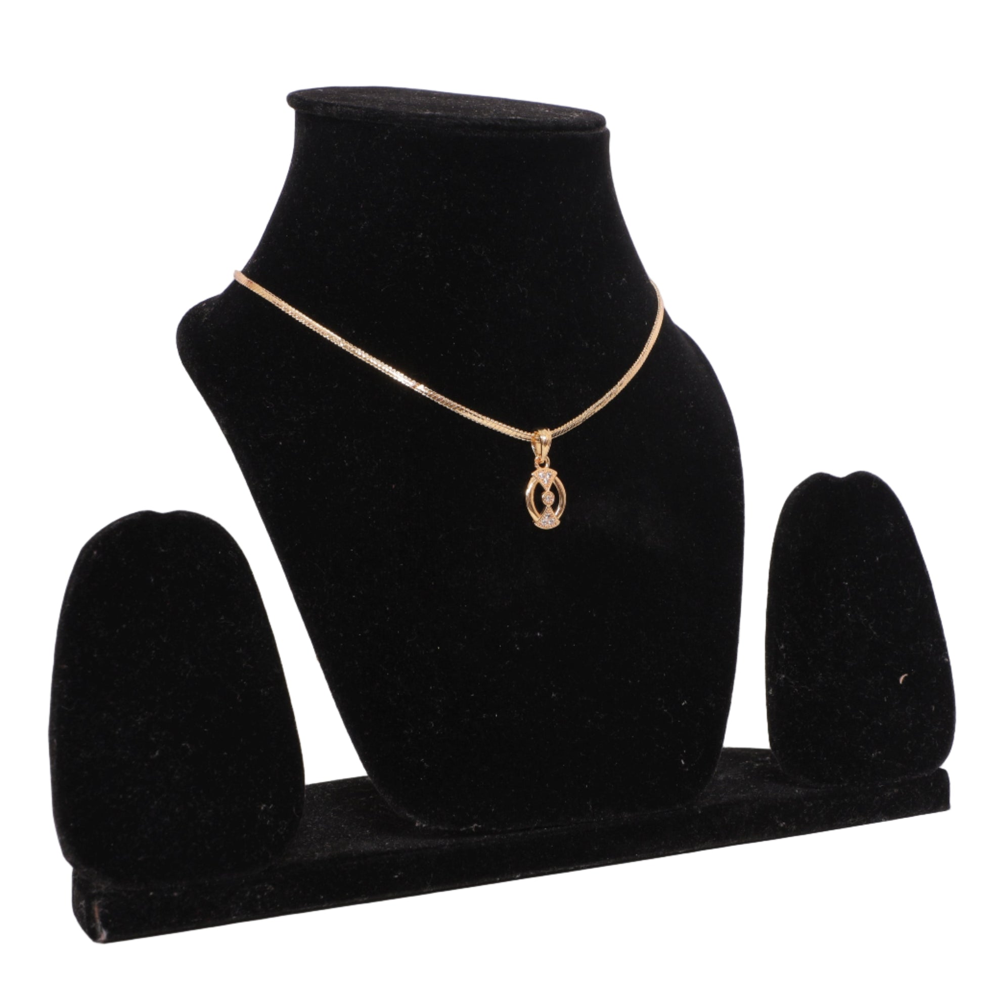 - 🟡 Oval pendant featuring dual triangle motifs with stone accents