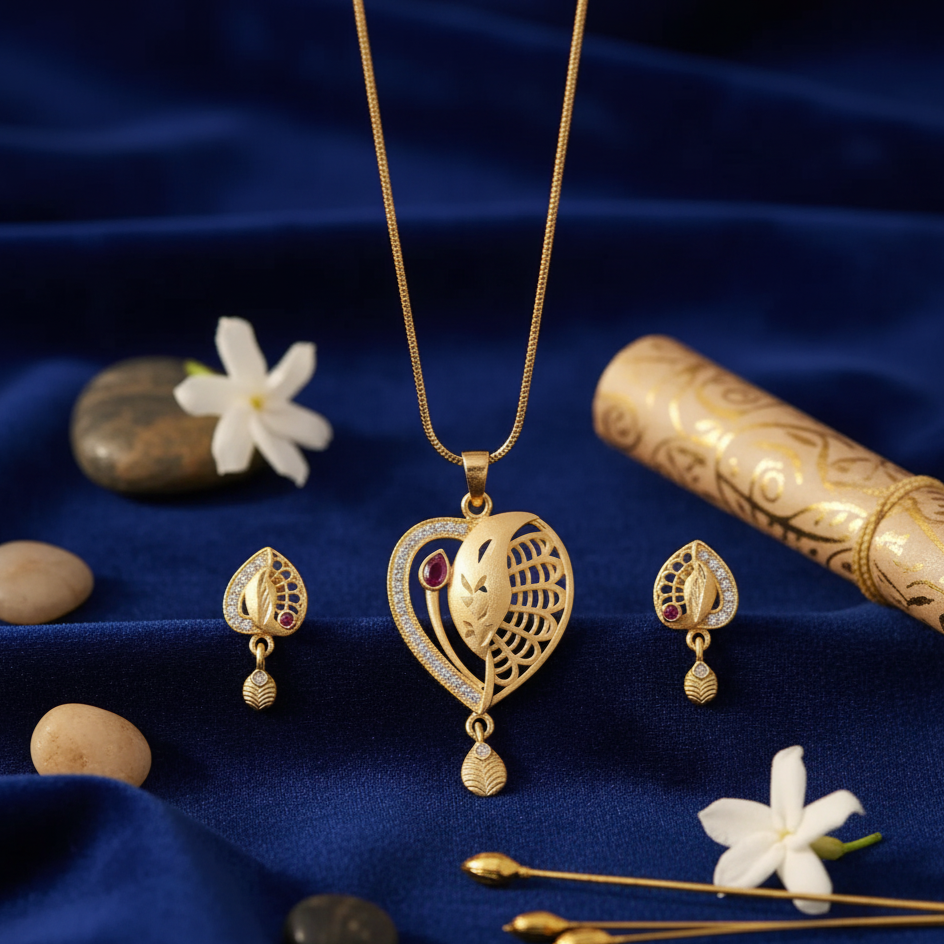 💛 Gold-toned heart motifs with leaf overlays and dangling beads