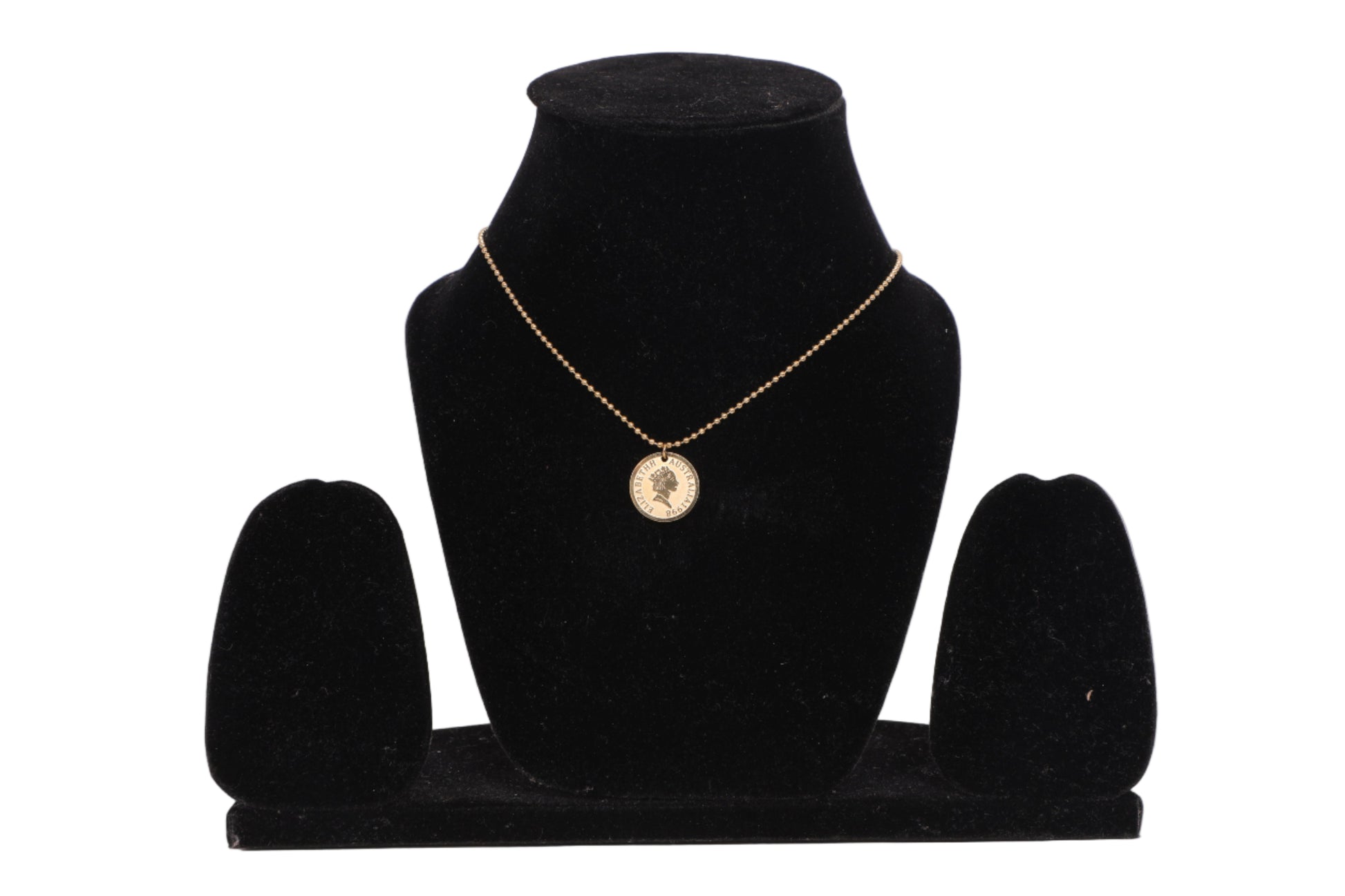 π Features a regal coin-style pendant engraved with Queen Elizabeth II
