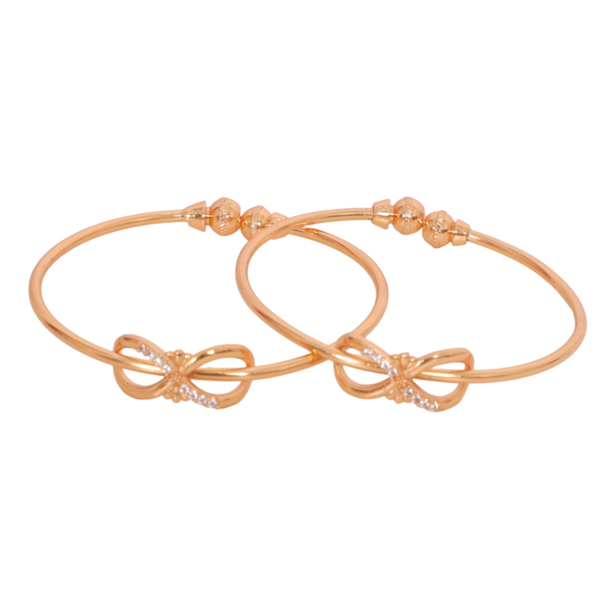Elegant rose gold bangles featuring intertwined infinity symbols adorned with sparkling diamonds and smooth end caps Perfect for adding a touch of sophistication to any outfit. A stylish gift for her or a treat for yourself! π