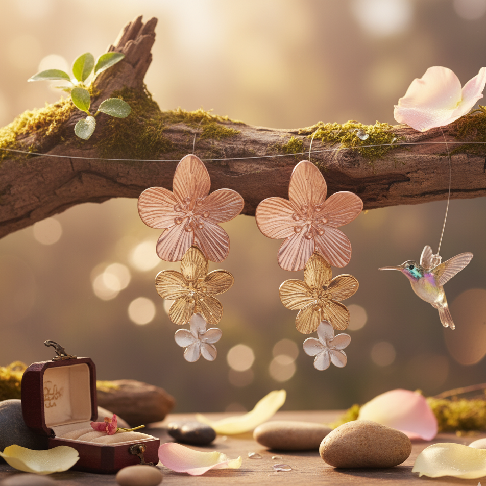 🌼 Celebrate timeless beauty with the Trio Bloom Metallic Flower Earrings.